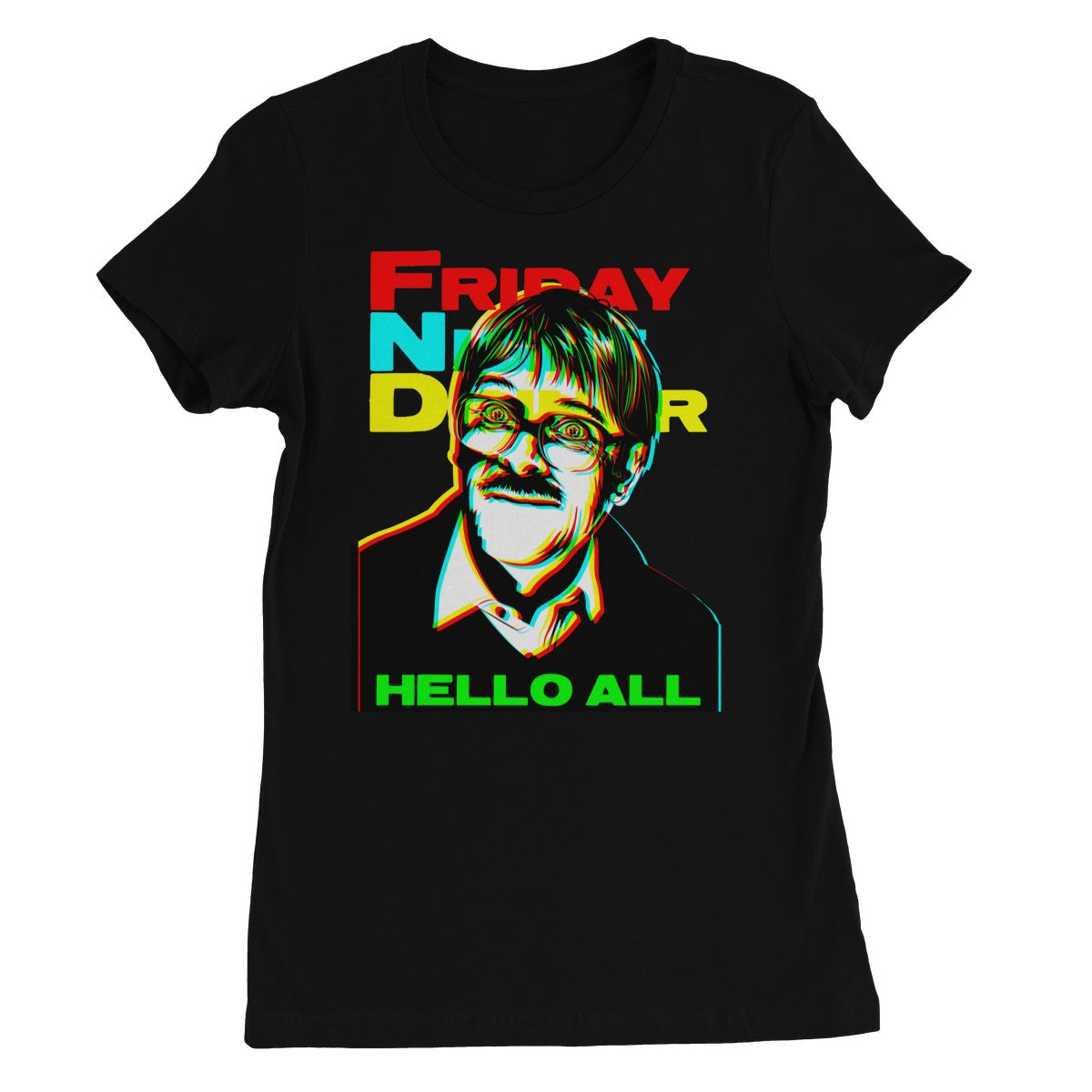 This women's T-shirt shows Jim and his iconic remark from the show when he visits the Goodman's house, "Hello All." This T-shirt is not only soft , but it also looks amazing thanks to its bright neon pattern.