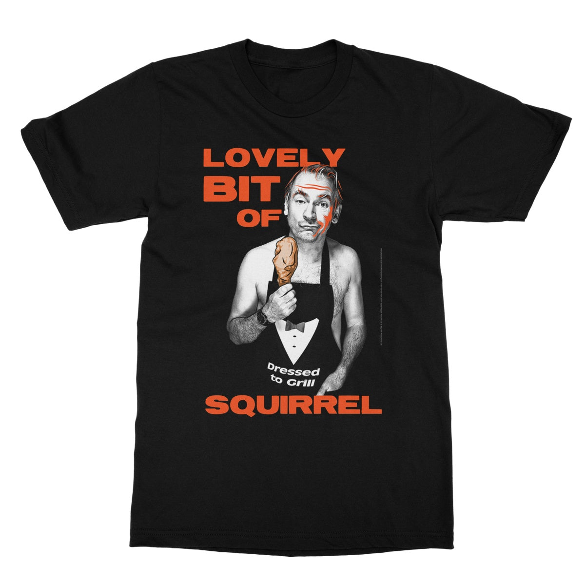 This classic T-shirt portrays Martin with his classic phrase from the show, "Lovely bit of squirrel," from when he is eating dinner with his family. This T-shirt is not only comfy, but also fashionable.