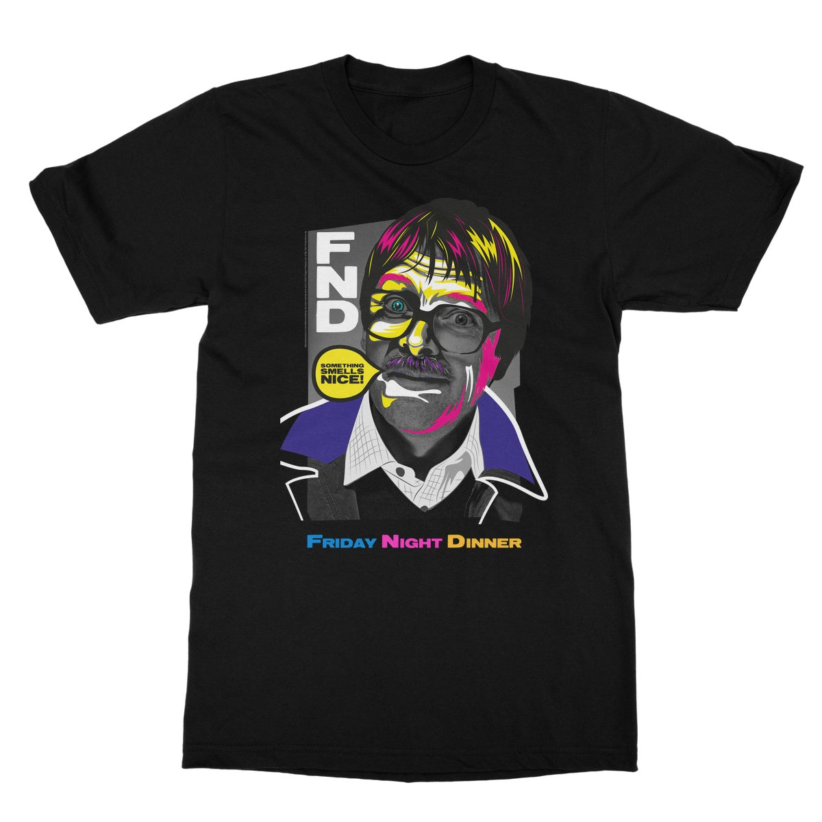 This T-Shirt features Jim and his classic line from the from the show when visiting the Goodman's house "Something Smells Nice!". This T-Shirt is not only comfortable but also looks great with its colourful neon design.